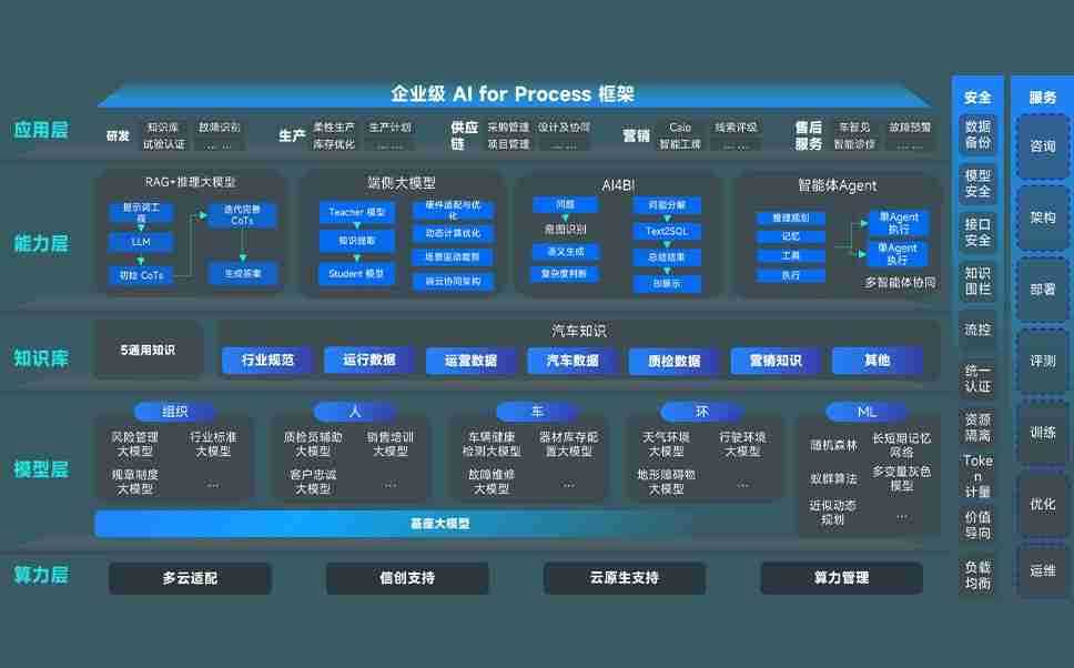 端到端的一站式AI工作空间深度融合了从企业战略规划到日常经营的全流程业务板块,,,定向解决车企内部领域多、、、、部门多、、、、链条长、、场景碎片化等难题,,,支持车企快速构建以AI为核心的生产力写作体系,,,,实现任务执行与AI能力的无缝集成与交互